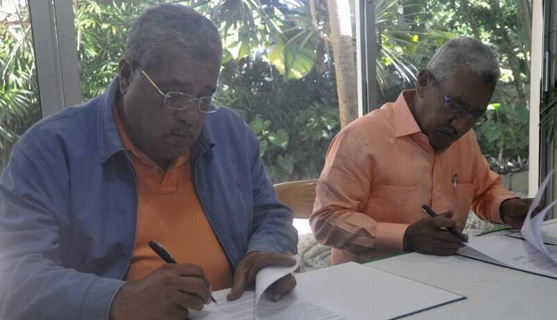 El acuerdo firmado entre ambas instituciones tuvo lugar en el Salón Administrativo del Jardín Botánico Nacional, y contó con la asistencia de los asesores sobre los cambios climáticos de la DGDC, Ramón Narpier y Carolina Lerebours, así como también encargados departamentales, divisiones y secciones del JBN.